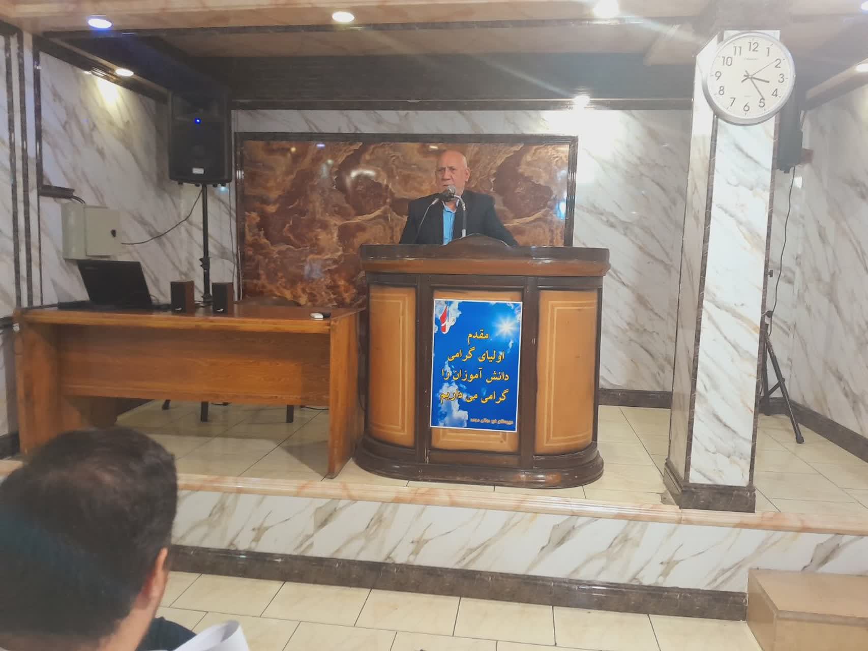 سپس جناب آقای دکتر پور میرزا معاون محترم آموزشی دبیرستان درخصوص آمادگی لازم اولیا برای ورود فرزندانشان به پایه دهم مطالبی را ایراد کردند .ودر ادامه به ارائه نکات کلیدی برای موفقیت تحصیلی دانش آموزان و تقویت مهارت های فردی و اجتماعی و ایجاد تعادل بین تحصیل و تفریح ، و تنظیم برنامه های مطالعاتی و طراحی و اجرای تمرین های روزانه برگرفته از کتاب موضوع روز اثر آقای جان کالوین مکسول بیاناتی را ابراز نمودند.